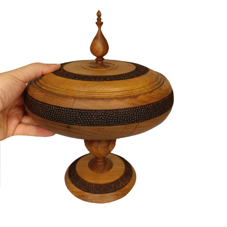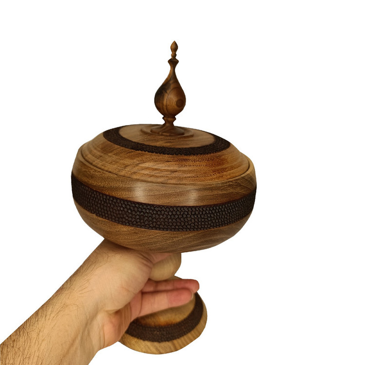 آجیل خوری چوب گردو مدل Aj-2818انتخابی ایده آل برای افرادی است که به محصولات چوبی علاقمند بوده و از حس طبیعی چوب در محیط لذت می برند. این محصول بی نظیر توسط اساتید مجموعه آی چوبک ، طراحی و از چوب گردو بسیار باکیفیت ، با اعمال دقت و ظرافت هرچه تمام ساخته شده است.که علاوه بر کاربردی بودن به عنوان آجیل خوری یا شکلات خوری ، زینت بخش محیط و میز پذیرایی در منزل می باشد.با توجه به دستی بودن خراطی این محصول و وجود طیفهای مختلف رنگ گردو ، ممکن است در نمونه ارسالی ما برای شما ، کمی تفاوت در رنگ و اندازه ( به میزان حداکثر یک سانتی متر ) وجود داشته باشد .