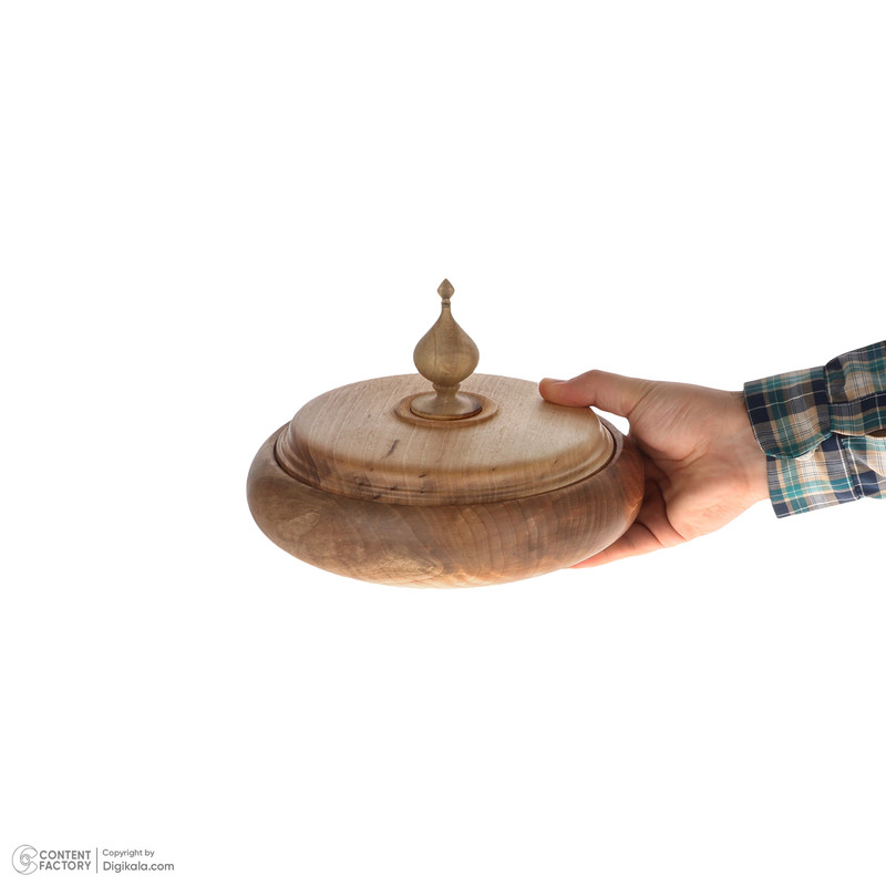 آجیل خوری بدون پایه کد 003 یک انتخاب زیبا و کاربردی برای سرو و نگهداری انواع آجیل، تنقلات و خشکبار است. این ظرف با ابعاد 22x22x19 سانتیمتر و وزن 625 گرم، طراحی شده تا فضای کافی برای ذخیرهسازی خوراکیها فراهم کند و در عین حال جابهجایی آسانی داشته باشد. سطح گود ظرف امکان دسترسی راحت به مواد داخل آن را فراهم کرده و درب چوبی هماهنگ با طراحی بدنه به حفظ بهداشت و تازگی خوراکیها کمک میکند. جنس این آجیل خوری از چوب طبیعی است که علاوه بر زیبایی، دوام و استحکام بالایی را تضمین میکند. شستوشوی دستی آن به حفظ ظاهر و کیفیت محصول کمک کرده و طول عمر بالای آن را تضمین میکند. این ظرف با طراحی ساده و طبیعی خود، گزینهای مناسب برای پذیرایی در مهمانیها و دورهمیها بوده و همچنین میتواند بهعنوان یک عنصر تزئینی در دکوراسیون منزل استفاده شود. آجیل خوری کد 003 با کیفیت بالا و طراحی منحصربهفرد، انتخابی عالی برای استفاده شخصی یا هدیه دادن است.