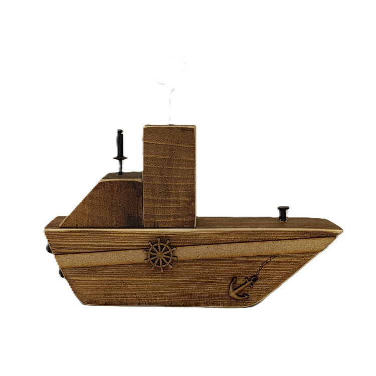 کشتی تمام چوب مدل Koo یک اثر هنری چوبی و کاربردی است که به عنوان جاعودی آبشاری عمل میکند. این مدل با دقت و ظرافت از چوب ساخته شده و ویژگی منحصر به فرد آن، داشتن یک سکان متحرک است که محل قرارگیری عود آبشاری میباشد. هنگامی که عود در این محل سوزانده میشود، دود غلیظ آن به جای صعود، از طریق ساختار داخلی به سمت بالا و از قسمت فوقانی سکان خارج میشود، و به این ترتیب، جلوهای زیبا و خاص از یک کشتی بخار در حال حرکت را در محیط تداعی مینماید.