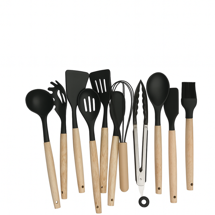 سرویس کفگیر ملاقه 12پارچه مدل کیچن ست ،یک محصول کاربردی عالی و زیبا در آشپزخانه شماست . که از چوب بامبو و سیلیکون تشکیل شده است . قسمت سیلیکون محصول تحمل دمای منفی 30 درجه و مثبت 230 درجه را دارد . و دسته چوبی آن ، ضمن بهداشتی بودن بسیار مقاوم در برابر حرارت و رطوبت می باشد. لذا با خیال راحت میتوانید از این محصول در پخت و پز روزانه استفاده کنید .